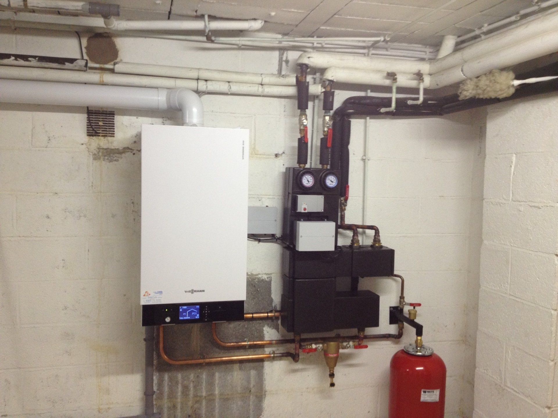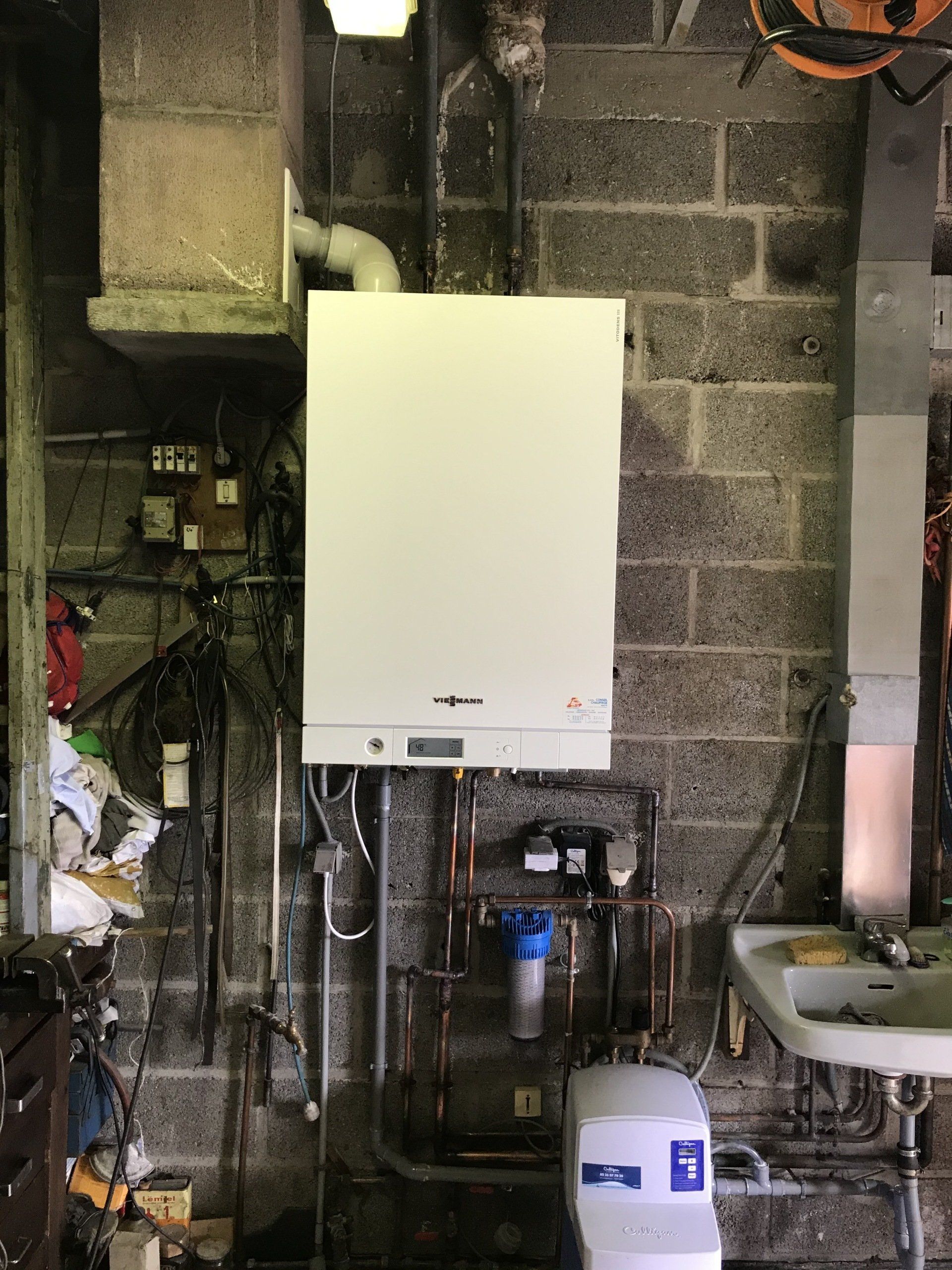 Ci-dessus une installation de chaudière de marque VIESSMANN type Vitodens 200 de 80 kw.